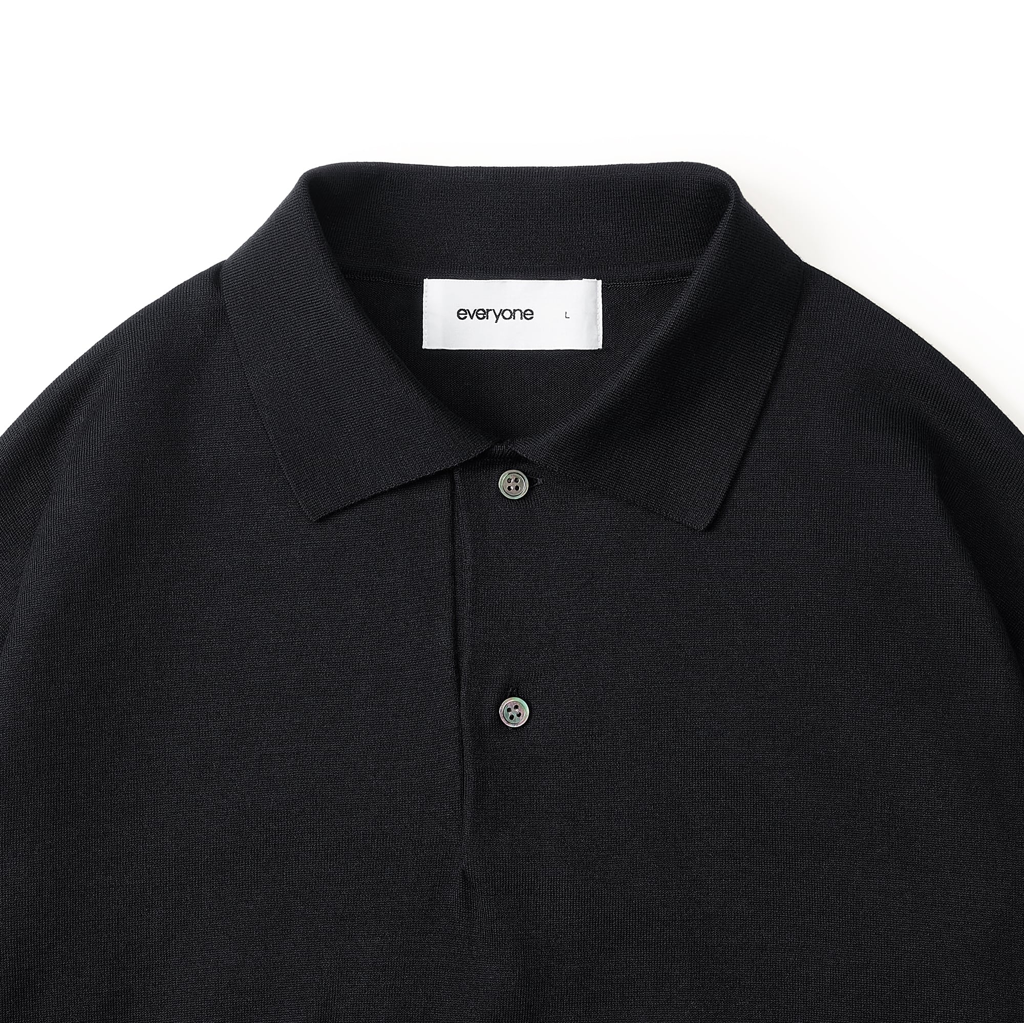 everyone cotton silk high gauge knit polo long sleeve (BLACK)