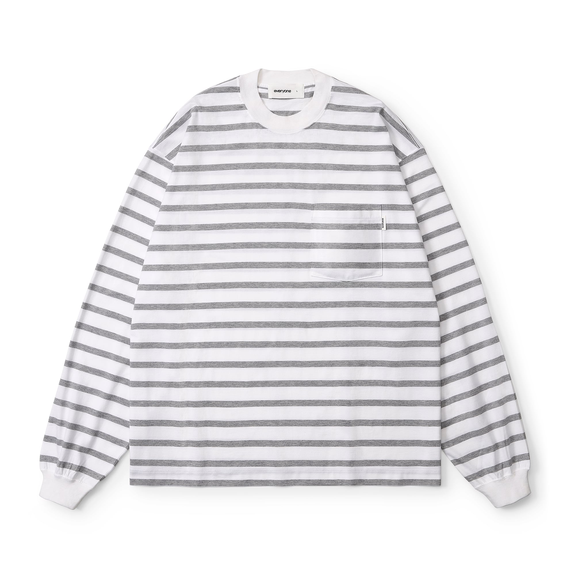 everyone high-gauge cotton border long sleeve tee shirt (WHITE×GRAY)